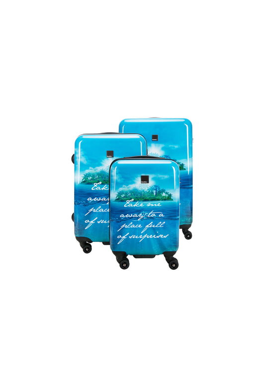 Saxoline Blue Hard Suitcase Set 3-Piece / Travel Valise Set / Trolley Set - Island Print