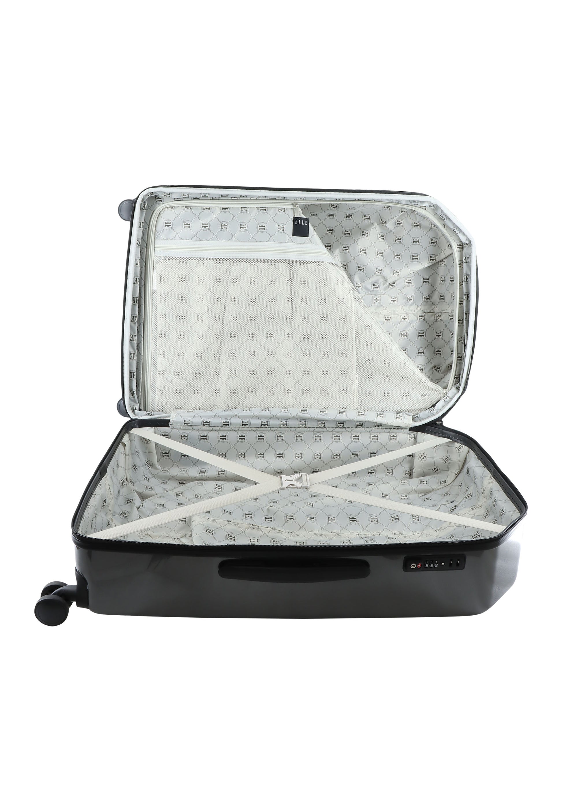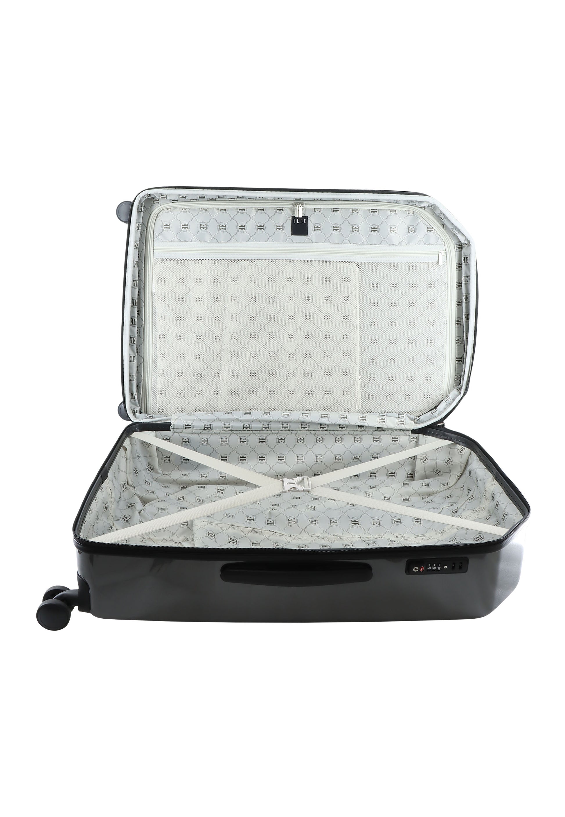 Ontdek de perfecte combinatie van elegantie en functionaliteit met de Elle Diamond Koffer. Vervaardigd uit duurzaam ABS???? verbindt deze koffer elegantie met robuustheid. Het ingebouwde TSA-slot zorgt voor maximale beveiliging, terwijl de vier dubbele wielen soepel rollen. Het interieur, met een volledig bedrukte voering en een U-vormige verdeler met een ritszak, biedt optimale organisatie voor al je reisbenodigdheden. Het aluminium trolleysysteem voegt een vleugje luxe toe aan je reiservaring.