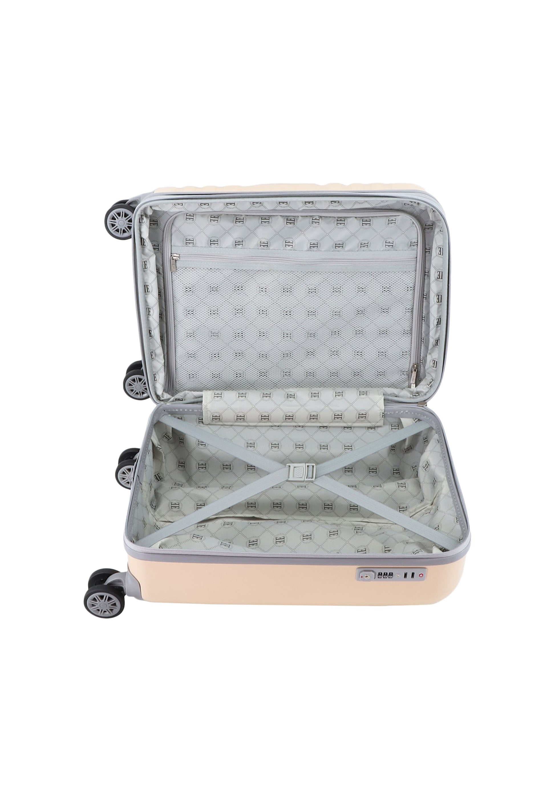 De ELLE Trending Follies bagage biedt u meer ruimte dankzij de uitbreiding en is de ideale handbagage voor lange reizen. Deze koffer onderging zéér strenge kwaliteitstesten om aan onze normen te voldoen. Circelvormig ABS-ontwerp met het logo in relief, openklapbare hoes met netzak verdeler en kruisbanden in het hoofdcompartiment met discreet ritsvak. Deze ELLE bagage heeft vier multi-directionele dubbele wielen die een rotatie van 360 graden mogelijk maken, zodat u het gewicht niet op uw arm of schouder hoeft te dragen. Voor veiligheid is hij uitgerust met een TSA-combinatieslot. Dankzij de kruisriemen en het tussenschot kunt u gemakkelijk inpakken en heeft u meerdere vakken om uw bezittingen georganiseerd te houden.